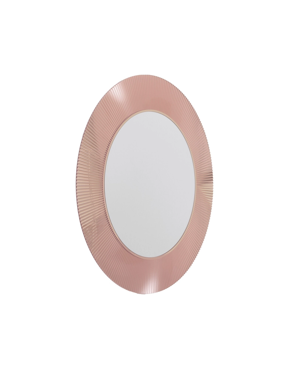 Round mirror with a transparent or coloured frame, with a unique pleated effect.