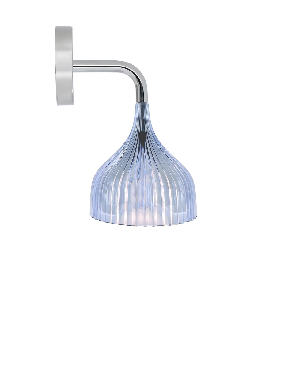 A lamp of simple and essential design, available in two versions, wall sconce and suspension lamp. The wall sconce is composed of a rosette lampshade in pleated available in several colours with an 11 cm chrome arm. The É suspension lamp consists of a pleated lampshade and a chrome rosette. The cable can be adjusted in height from 20 to 220 cm. Both versions take a 40 Watt light-bulb.