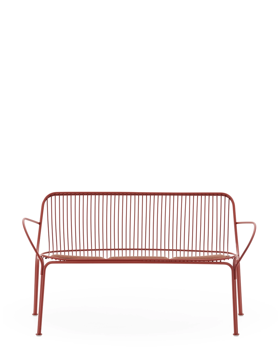 HIRAY leker med metallen, ett av de viktigaste materialen för miljöanpassningen av Kartell-katalogen, och använder tekniken med svetstråd för att bearbeta den. Resultatet är ett stilrent och funktionellt uttryck som samtidigt är fyllt av känsla. Metalltrådarna skapar möbler med en såväl tydlig som lätt konstruktion: stol, karmstol, cafébord, fåtölj, soffa och sidobord. Kollektionen finns i färgerna vit, rödbrun, svart och grön.