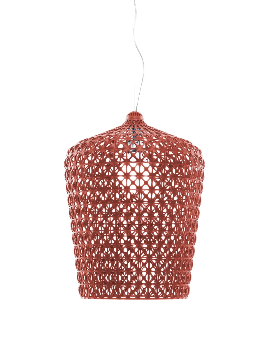 Golvlampan Kabuki är formsprutad vilket gör det möjligt att få en spetsmönstrad struktur med en speciell perforerad yta genom vilken ljuset sprids. Den finns i versioner för inomhusbruk och utomhusbruk.