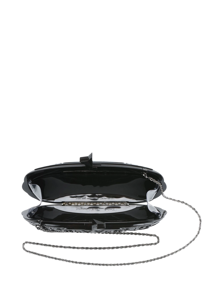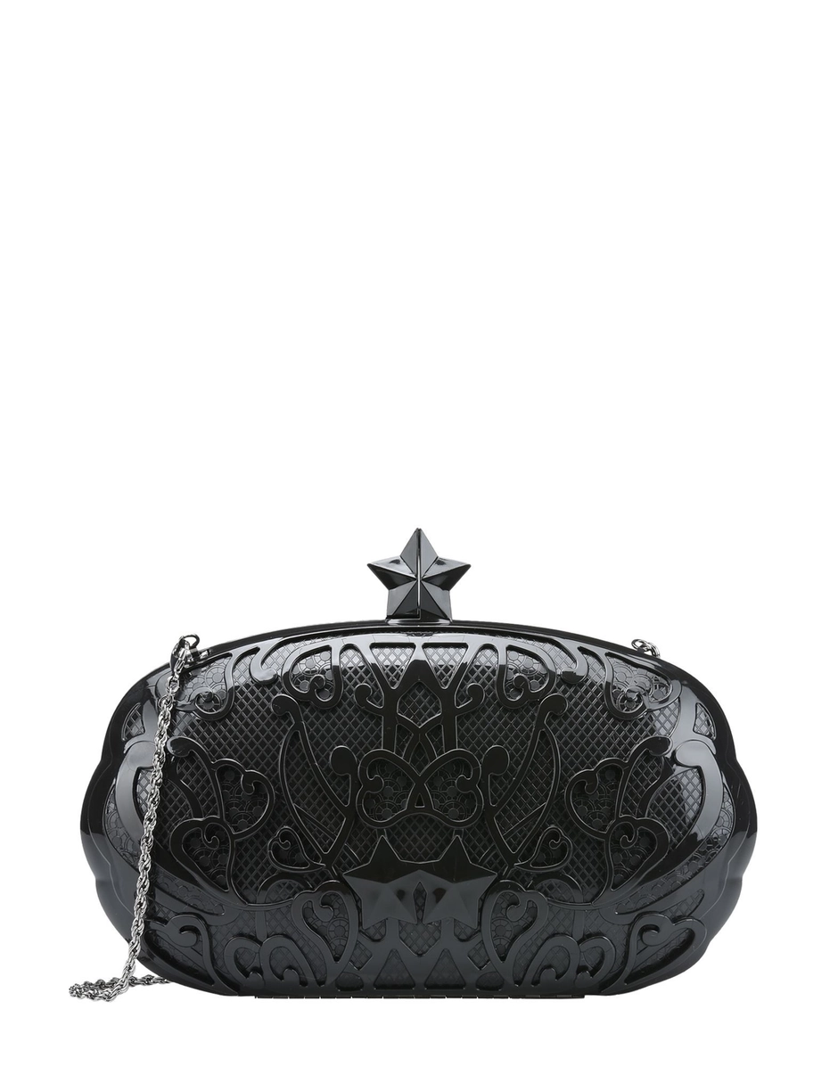 The Rosas clutch catches the eye thanks to its unusual opening with a three-dimensional star and comes complete with a shoulder chain.
