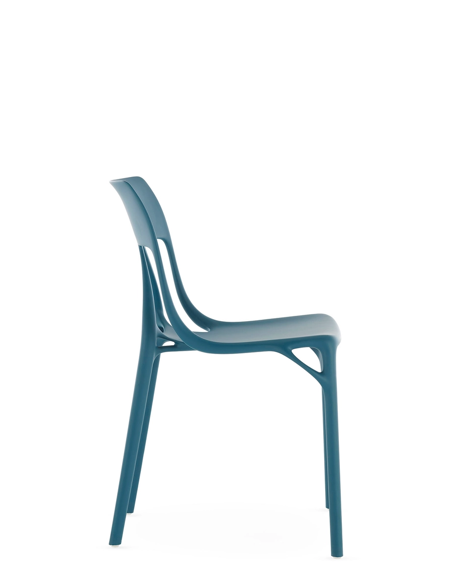 A.I. Lite is an addition to the A.I. chair collection that embodies the principle of “ever more, ever less”. The new chair preserves the essence of the original, keeping the distinctive lines and refined looks of its big sister. The absence of armrests, however, further accentuates lightness of shape, presenting cleaner-than-ever lines. New colours add to A.I. Lite’s brand-new look. The result is an essential, modern and versatile chair that adapts easily to all kinds of setting. Its simplified structure makes the chair more accessible and dynamic without in any way reducing comfort. A.I. Lite is a perfect expression of smart, evolved design and a great choice for anybody seeking a new balance between minimalism and functionality.