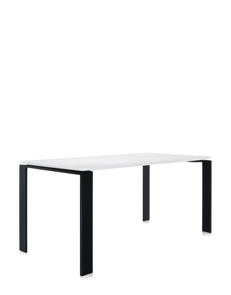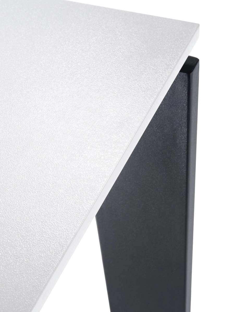 This functional and refined table also has a strict geometric design. Thanks to the elegant design solution, the position of the slim table top allows for the convenient positioning of drawers or storage furnishings for computer hardware. They can be placed side-by-side to form office workstations.