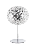A family of lamps: suspended, for a coffee table and with a metal structure, and the most recent floor version of the lamp is available in two heights: 130 and 160 cm. The distinctive trait is the shape of the slightly elliptical transparent diffuser, which is characterised by a multi-faceted surface, both inside and out, which creates a rich tapestry of reflections.