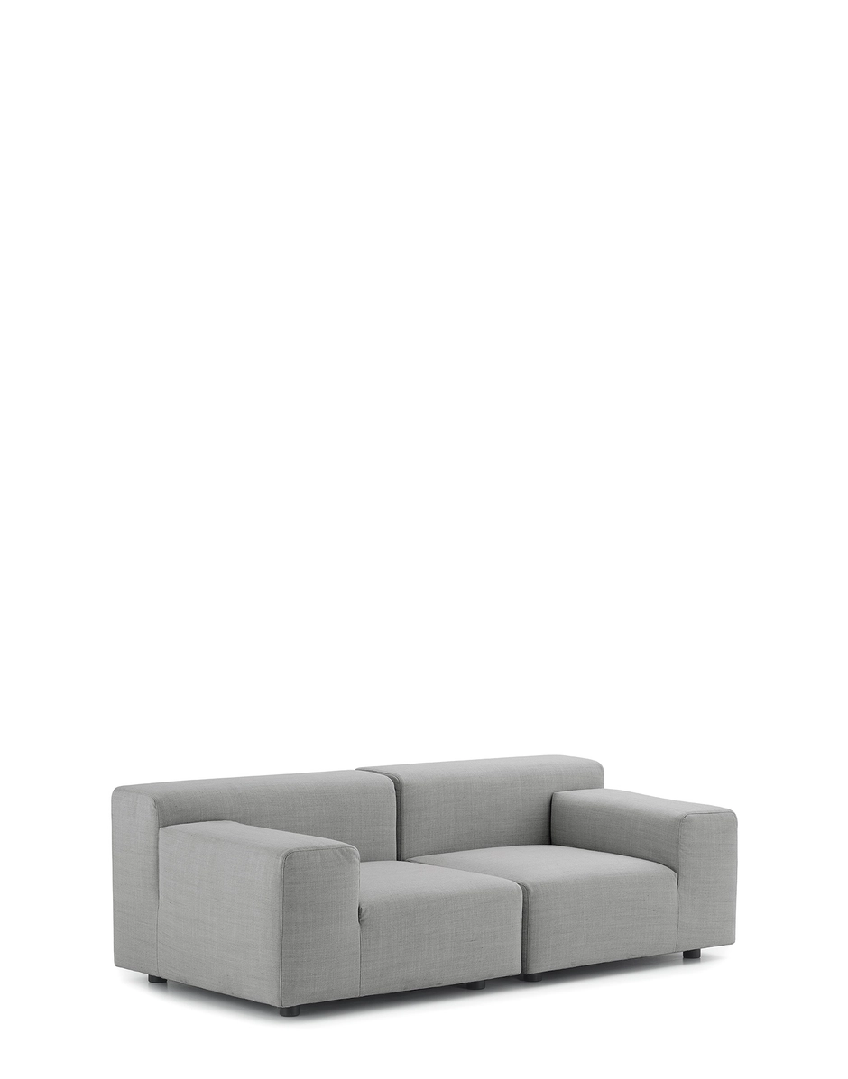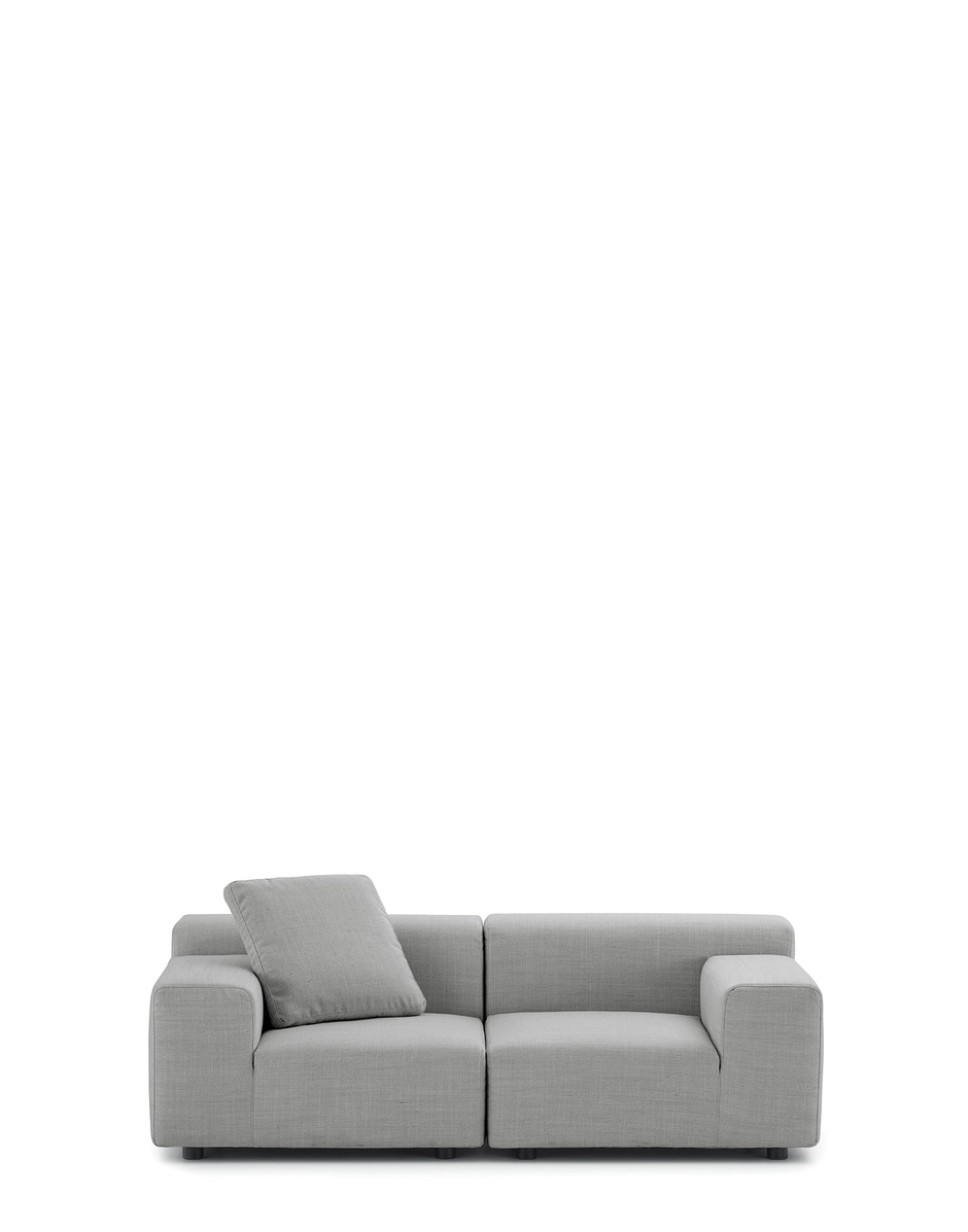 Plastic Outdoor is the outdoor version of the modular sofa with severe lines characterised by large cushions made of soft polyurethane upholstered in fabric. The Plastics collection is completed by an armchair with the same features and by a pouf, which can be used individually or as part of an arrangement.