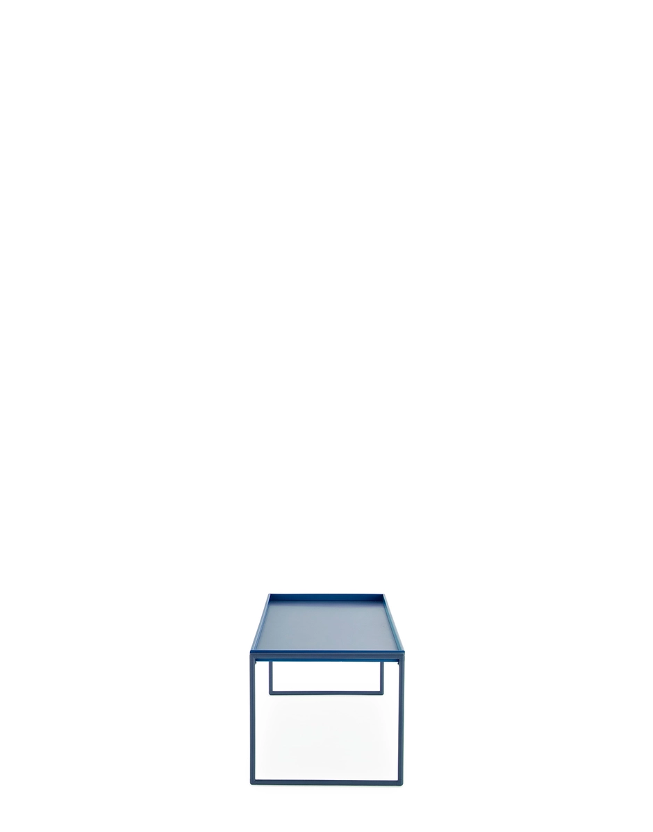 TRAYS is a versatile shelving system for home or office use. The concept is that of a set of tables, trolleys and shelves with surfaces inspired by traditional Japanese lacquered trays in both design and finish. The TRAYS collection is now bigger than ever, with new heights and shapes covering a wider range of modern needs and functionalities. TRAYS also boasts a new colour palette, with metal frames now in tone on tone shades.